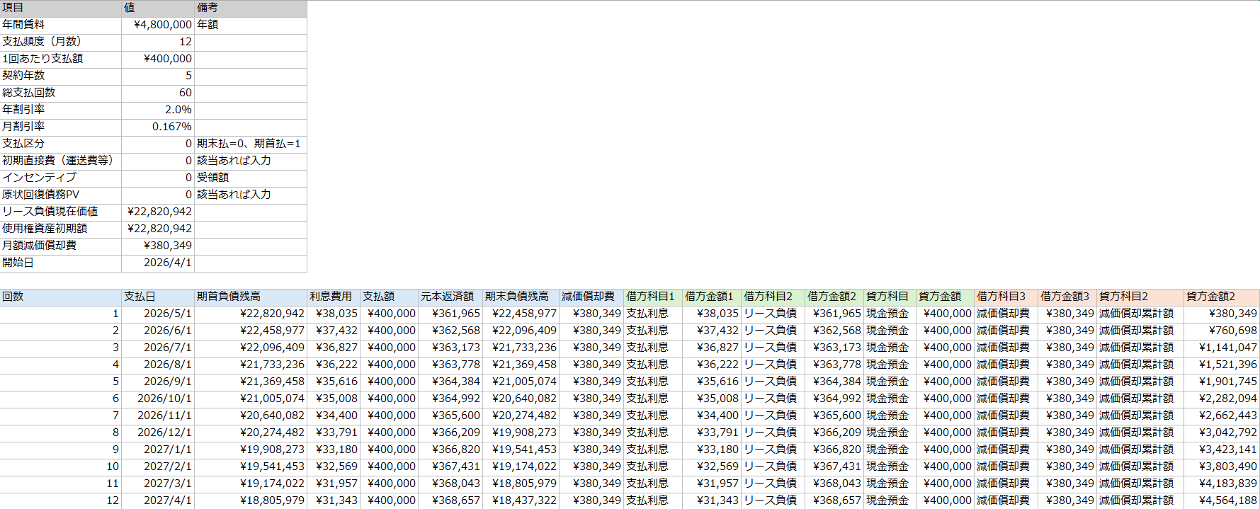 新リース会計基準の計算を試してみました